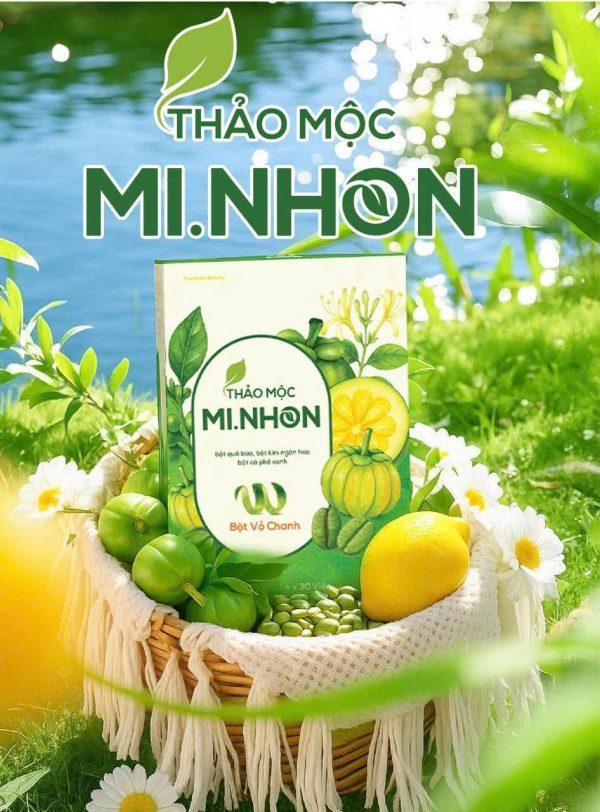Thảo mộc Mi Nhon được chiết xuất từ thiên nhiên, hiệu quả cho người sử dụng với các thành phần: Bột quả bứa, bột kim ngân hoa, bột gạo lứt, bột vỏ chanh, bột cafe xanh