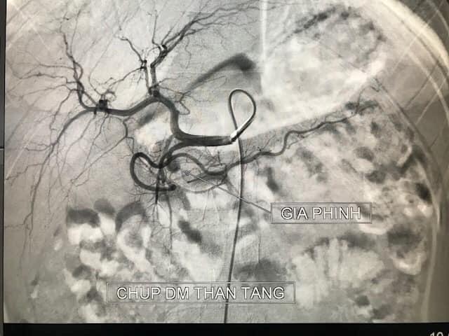 Sau khi hội chẩn, các bác sĩ nhận định đây là trường hợp nặng, nguy cơ chảy máu ồ ạt đe dọa tính mạng người bệnh. Bệnh nhi đã được can thiệp cấp cứu ngay sau đó. Sau 20 phút can thiệp với 5 coils ổ giả phình đã được loại bỏ hoàn toàn.