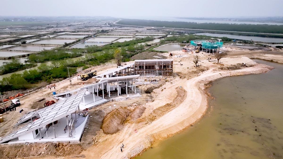 Dự kiến chính thức mở cửa đón khách thăm quan vào tháng 4 năm nay nên công trường hiện tại luôn tấp nập công nhân và máy móc xây dựng.
