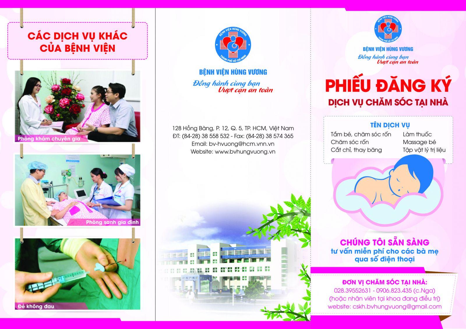 300,000 Dịch vụ xông vùng kín 200.000Trên cơ sở đó, Bệnh viện Hùng Vương xin giới thiệu dịch vụ chăm sóc tại nhà chuyên nghiệp dành cho các bà mẹ mới xuất viện nhằm chăm sóc liên tục Mẹ và Bé với các dịch vụ chăm sóc hậu sản hoàn hảo ngay tại chính ngôi nhà bạn.