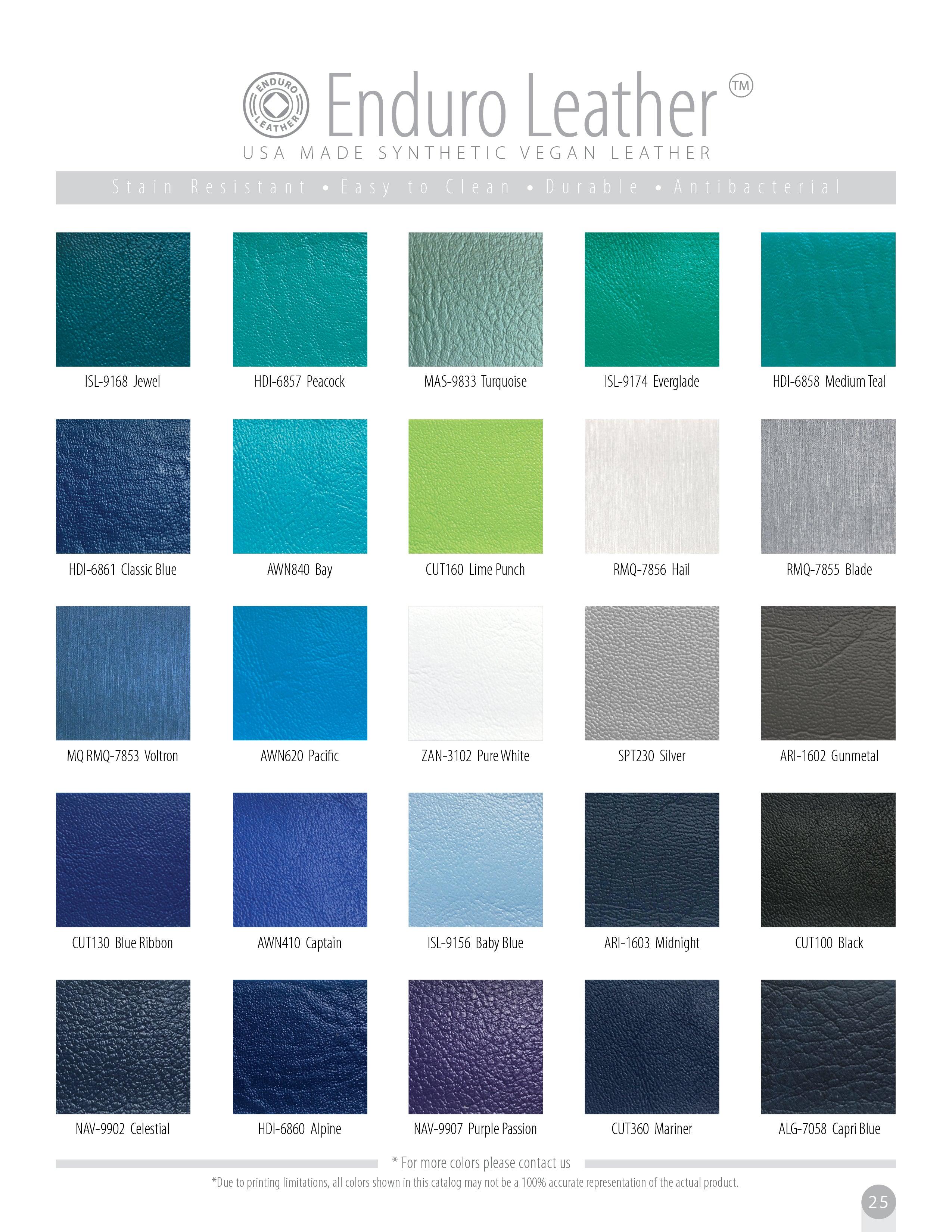 DA ENDURO - Loại da kháng khuẩn, dễ lau chùi, bền và có nhiều màu sắc đa dạng. Sản xuất tại Mỹ. 100 màu sắc khác nhau của Da Enduro! Nhiều màu sắc Enduro hơn!